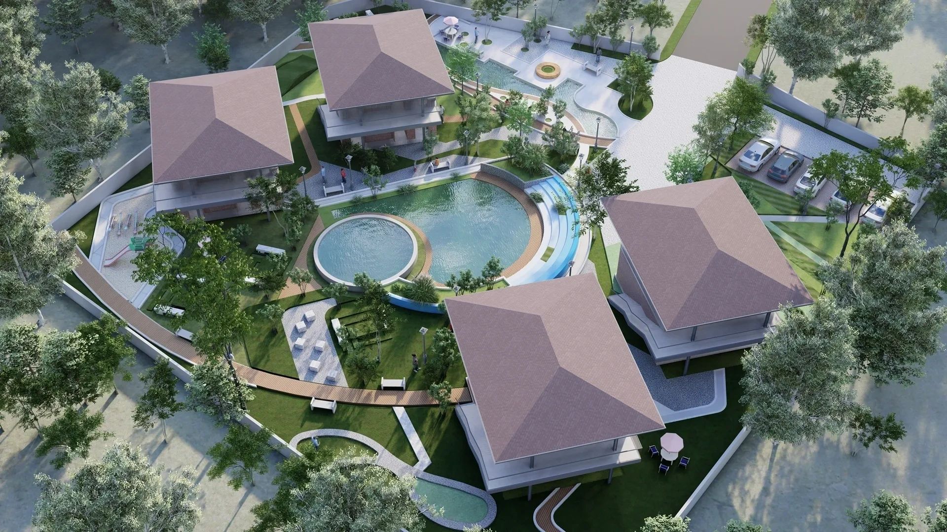 Project is equipped with complete solar power for all 4 villas, amenities and common areas